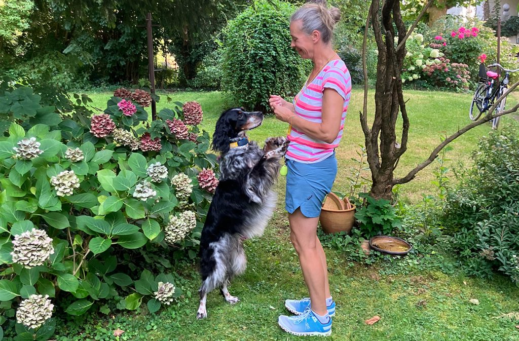 Meine eigenen Hunde waren und sind neben meiner fundierten Ausbildung bei der Hunde-Akademie Perdita Lübbe Darmstadt und der Kölner Hundeakademie die größten Lehrmeister für mich. Sie kamen und kommen alle aus dem Tierschutz, mit ganz individuellen Vorerfahrungen und Prägungen. In unserer Familie leb(t)en neben meinem Mann und unseren beiden Kindern der selbständige Hütehundmix von der Straße aus Griechenland, der sportliche, ressourcenfixierte Pudel-Schnauzer aus dem örtlichen Tierheim und der passionierte Vorstehhund vom Jäger aus Frankreich. Sie und viele weitere (Rasse-)Hunde aus meinem Umfeld haben mich in idealer Weise auf meine heutige Tätigkeit als Hundetrainerin vorbereitet. Meine Liebe gehört den Vorstehhunden, ganz speziell den Settern. Was für den einen Hund als Methode gut funktioniert kann für den anderen eventuell nur mäßige Fortschritte im Training bedeuten. Ob Clickertraining, Leinenführigkeit oder Rückruf, das Training wird ganz individuell an das Mensch-Hund Team angepasst.